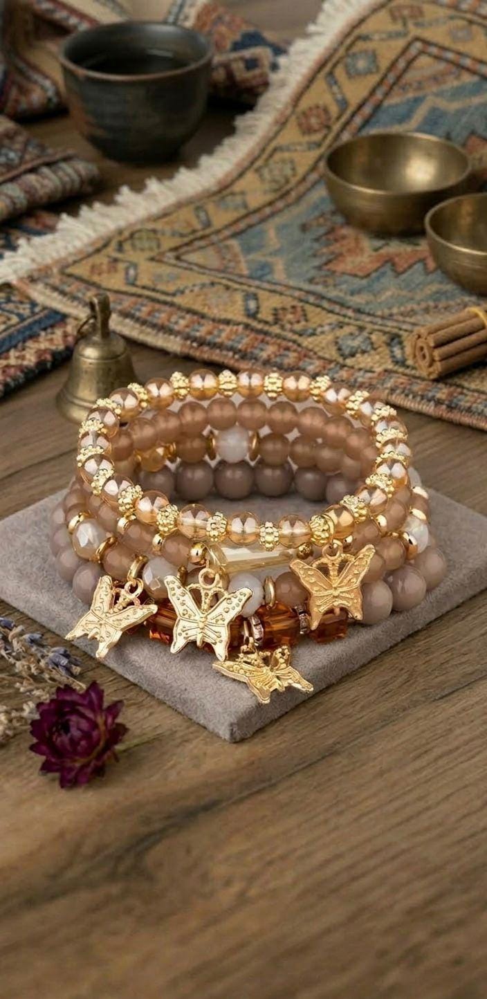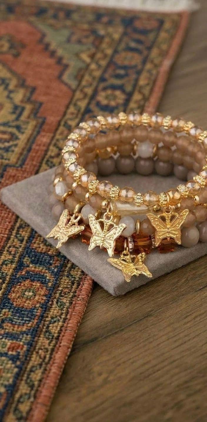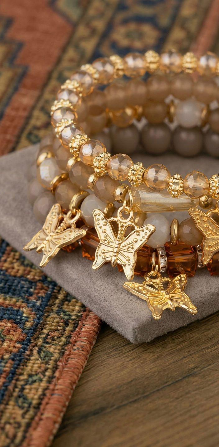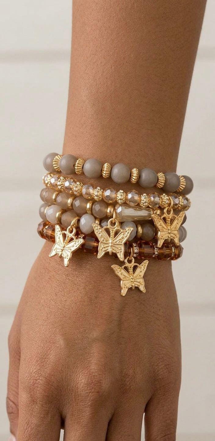 Bring a playful, feminine touch to your jewelry collection with this butterfly beaded bracelet set!