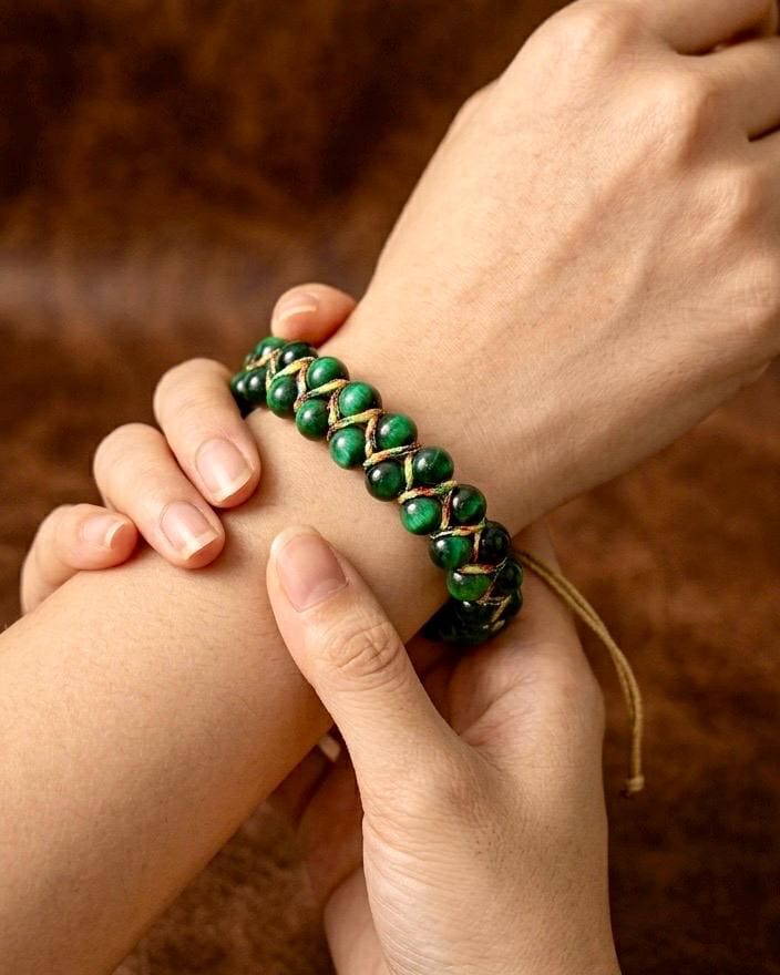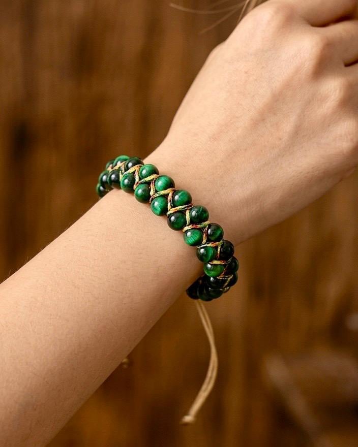 Handmade Blue Tiger Eye Braided Bracelet Bring the calming energy of nature and the elegance of craftsmanship to your wrist. This special piece features 6mm natural Blue Tiger Eye stones, meticulously hand-braided with durable cord for a timeless look.