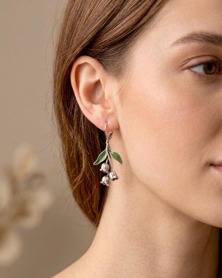 Bring natural elegance to your style with these 925 Sterling Silver Lily of the Valley Earrings. Handmade with delicate details, these floral drop earrings symbolize happiness and purity—making them a meaningful gift for someone special.